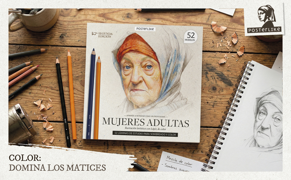 Tauchen Sie ein in die faszinierende Welt der Kunstporträts mit „Lerne wie ein Profi zu porträtieren Erwachsene Frauen. Künstlerische Illustration mit Buntstift“. Diese Ausgabe widmet sich ausschließlich der Feier der Schönheit und Tiefe erwachsener Frauen und ermöglicht es Ihnen, jedes Detail zu erkunden, von den zarten feinen Linien bis hin zur Intensität ihres Blicks.