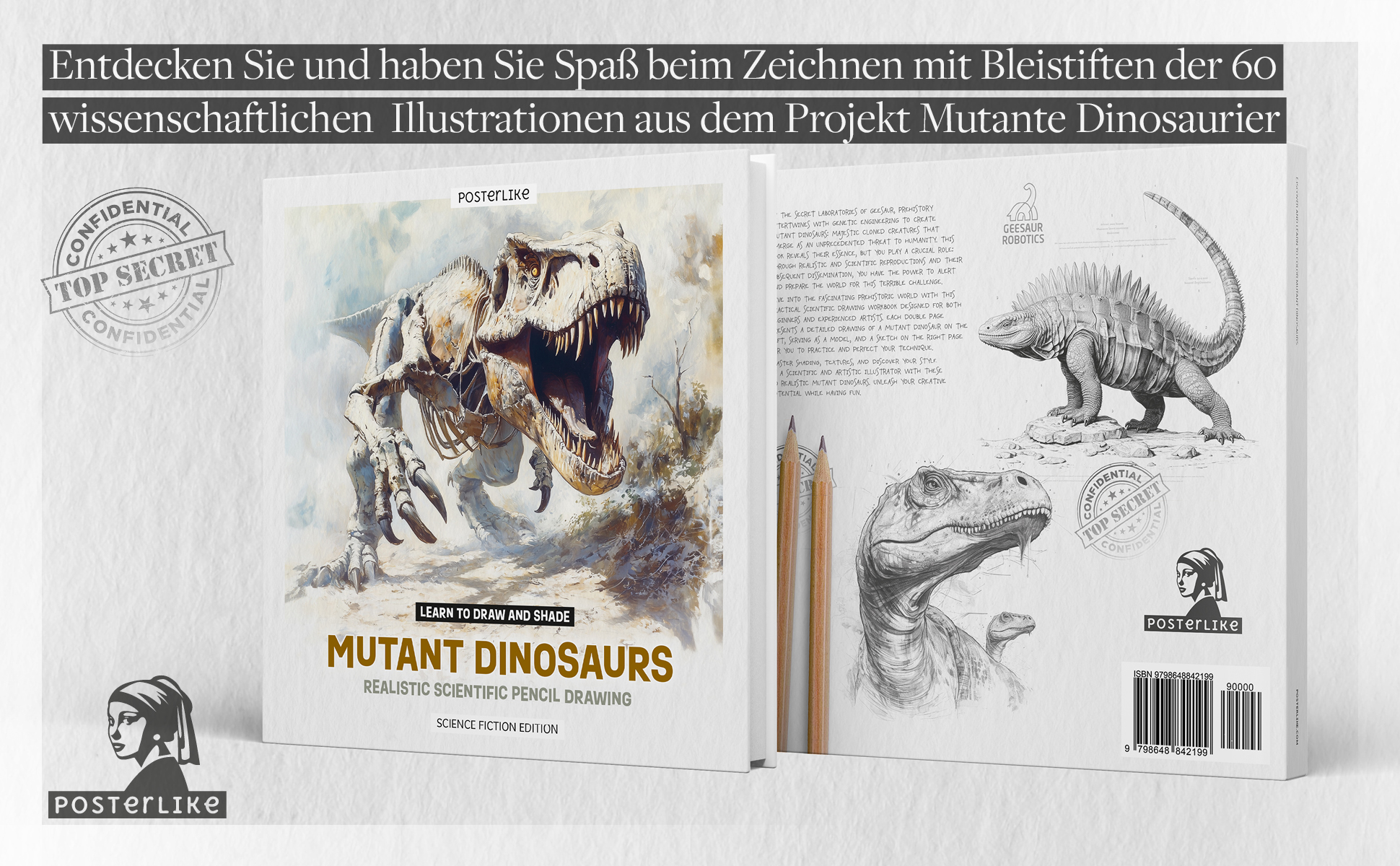 In den geheimen Laboratorien von GEESAUR verflechten sich die Vorgeschichte mit der Gentechnik, indem sie die mutierten Dinosaurier erschaffen: majestätische, geklonte Kreaturen, die sich zu einer beispiellosen Bedrohung für die Menschheit entwickeln. Dieses Buch enthüllt Ihnen seine Essenz, aber Sie spielen eine entscheidende Rolle: Durch realistische und wissenschaftliche Reproduktionen mit Bleistift und deren anschließende Verbreitung haben Sie die Macht, die Welt auf diese schreckliche Herausforderung aufmerksam zu machen und vorzubereiten. Tauchen Sie ein in die faszinierende prähistorische Welt mit diesem praktischen wissenschaftlichen Zeichenbuch , das sowohl für Anfänger als auch für erfahrene Künstler entwickelt wurde. Jede Doppelseite enthält eine detaillierte Zeichnung eines mutierten Dinosauriers auf der linken Seite, die als Modell dient, und eine Skizze auf der rechten Seite, mit der Sie Ihre Technik üben und perfektionieren können.