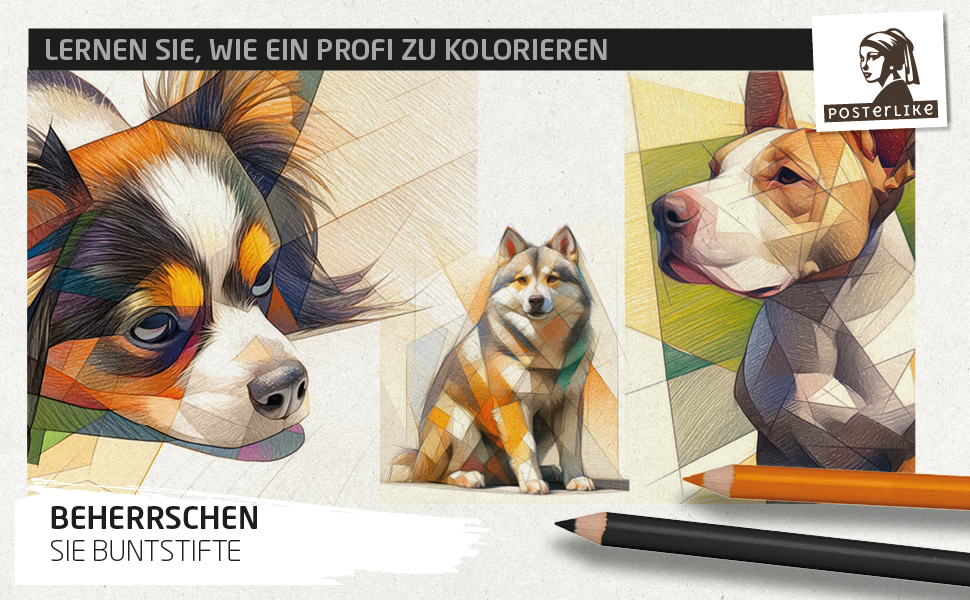Mit „Künstlerische Farbige Hunde“ erweitern Sie Ihre Fähigkeiten, entdecken neue Stile und tauchen in die Welt der Farbstiftkunst ein. Perfekt für jeden, der lernen möchte, wie man Haustiere kreativ und präzise zeichnet.