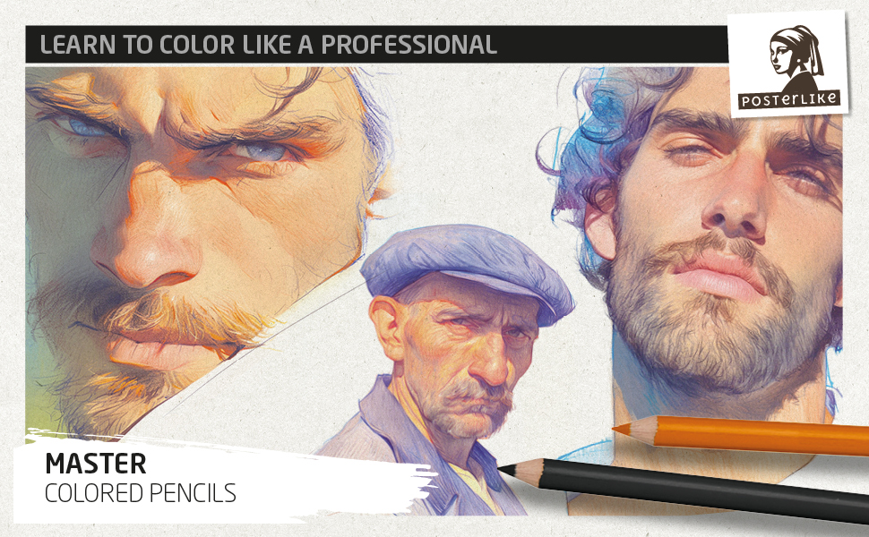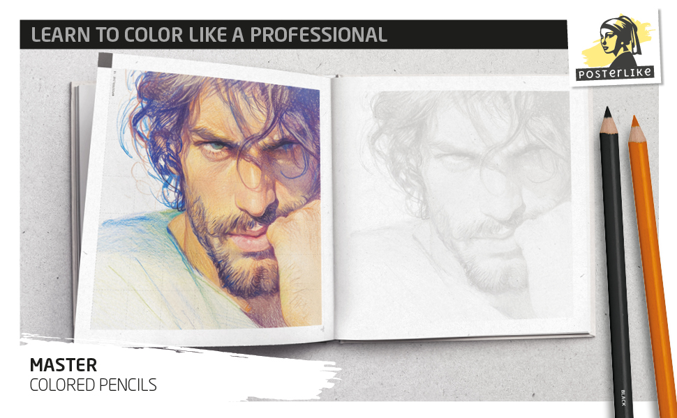Cover of the book 'Learn to Color Like a Professional: Male Portrait Coloring' by Posterlike Editions.