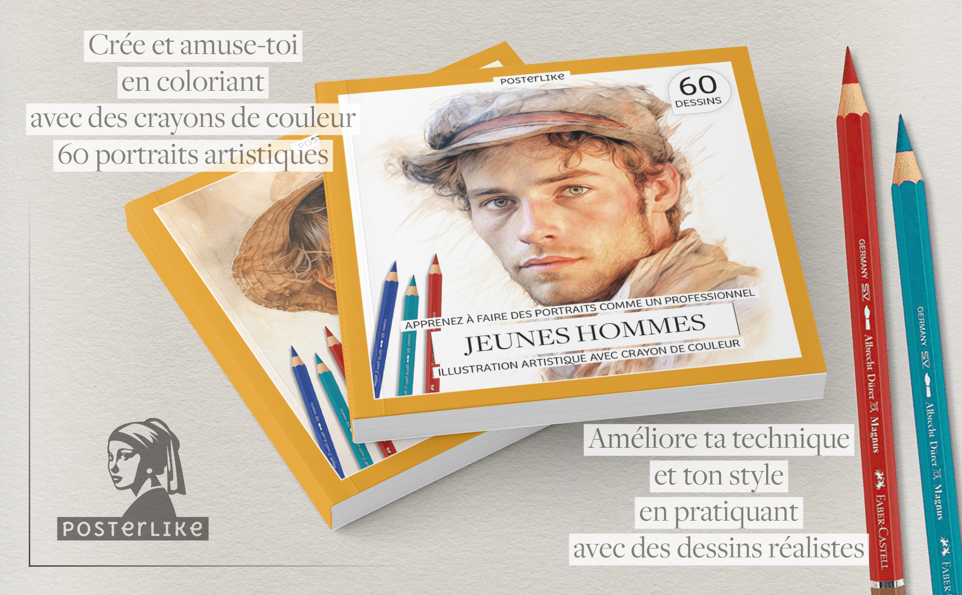 Découvrez l’art du portrait masculin avec le livre «Apprenez à faire des portraits comme un professionnel jeunes hommes». Osez pratiquer les crayons de couleur avancés à travers 60 exercices détaillés inspirés des grands maîtres. Ce livre améliore non seulement vos compétences, mais vous plonge également dans une expérience d’apprentissage agréable et enrichissante. Faites le saut artistique que vous recherchiez!