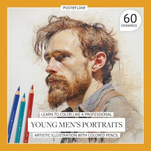 Learn how to portray like a pro. Young men. Artistic illustration with colored pencil
