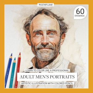 Learn how to portray like a pro. Adult men. Artistic illustration with colored pencil