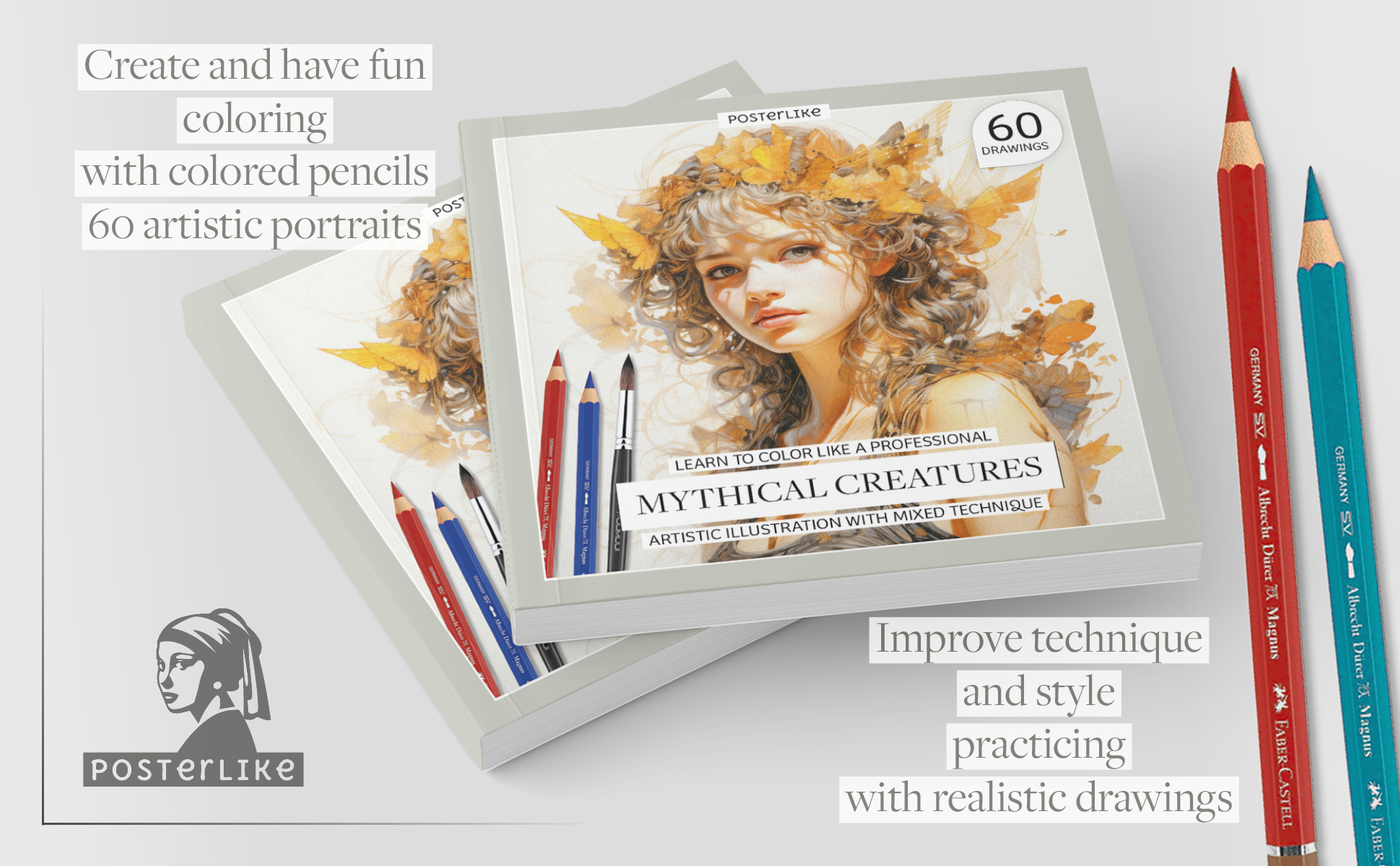 “Learn to color like a professional Mythical Creatures. Artistic illustration with mixed technique” is an artistic illustration practice book to practice coloring mythological beings using dry or lightly watercolored pencils. It has 60 detailed portrait exercises that will allow you to understand the treatment of volume, tonal assessment, textures and color. An ideal book to practice fine art from a rich and colorful world of imagination and fantasy. Bring your fantasy illustrations to life with unparalleled depth and beauty. Each exercise is a step forward in your creative journey.