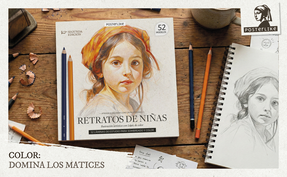 Aprende a colorear como un profesional retratos de niñas. Ilustración artística con Lápiz de color