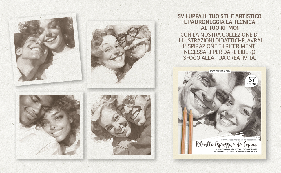 Non aspettare oltre per migliorare le tue abilità nel disegno di ritratti. Con “Ritratti Espressivi di Coppie”, potrai esplorare emozioni e dettagli, perfezionando la tua arte e creando opere ricche di carattere e autenticità.