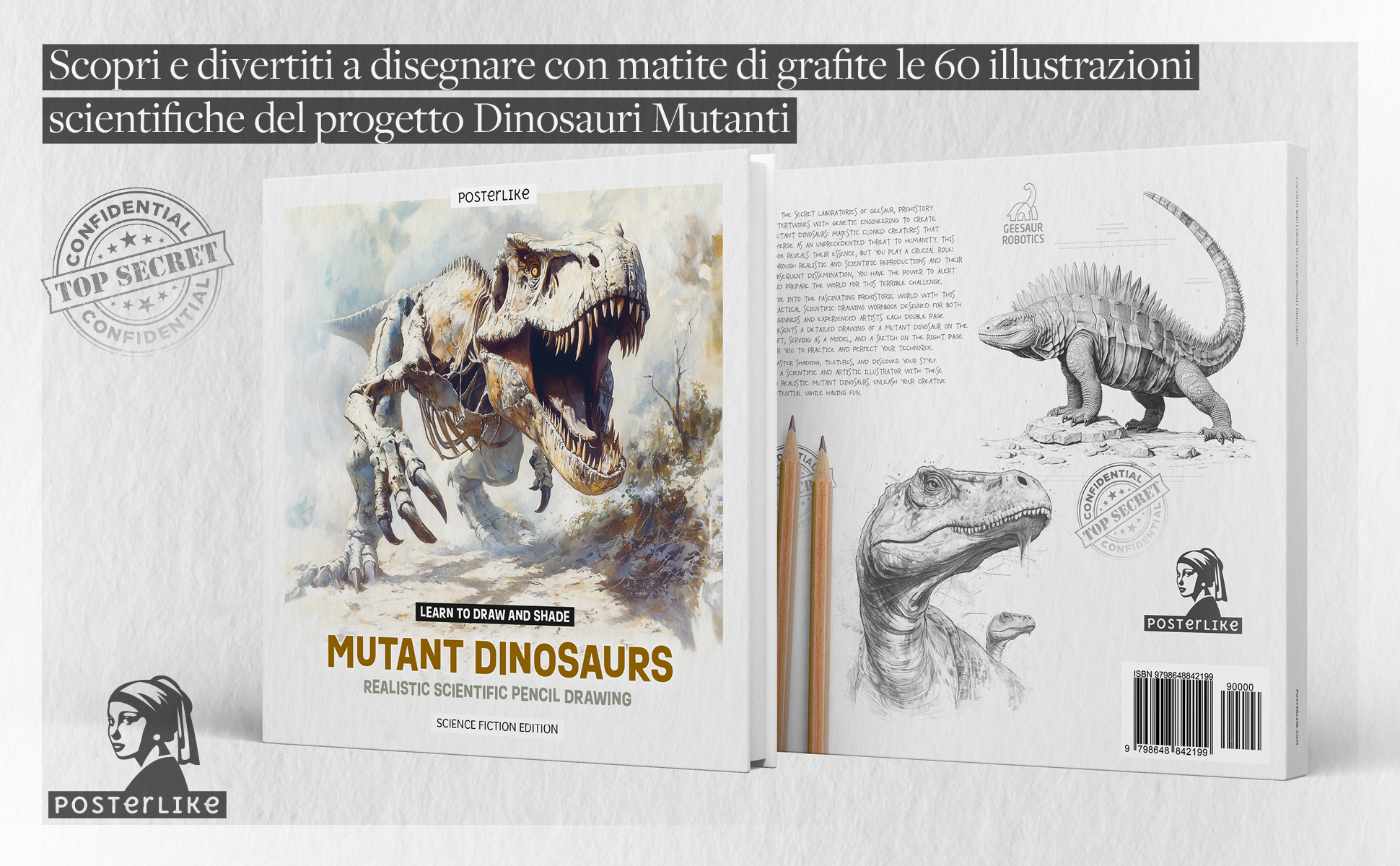 Nei laboratori segreti di GEESAUR, la preistoria si intreccia con l’ingegneria genetica creando i Dinosauri Mutanti: maestose creature clonate che emergono come una minaccia senza precedenti per l’umanità. Questo libro ti rivela la sua essenza, ma tu svolgi un ruolo cruciale: attraverso riproduzioni realistiche e scientifiche a matita, e la loro successiva diffusione, hai il potere di allertare e preparare il mondo a questa terribile sfida. Immergiti nell’affascinante mondo preistorico con questo pratico quaderno di disegno scientifico progettato sia per i principianti che per gli artisti esperti. Ogni doppia pagina presenta un disegno dettagliato di un dinosauro mutante sulla sinistra, che funge da modello, e uno schizzo sulla pagina destra per esercitarti e perfezionare la tua tecnica.