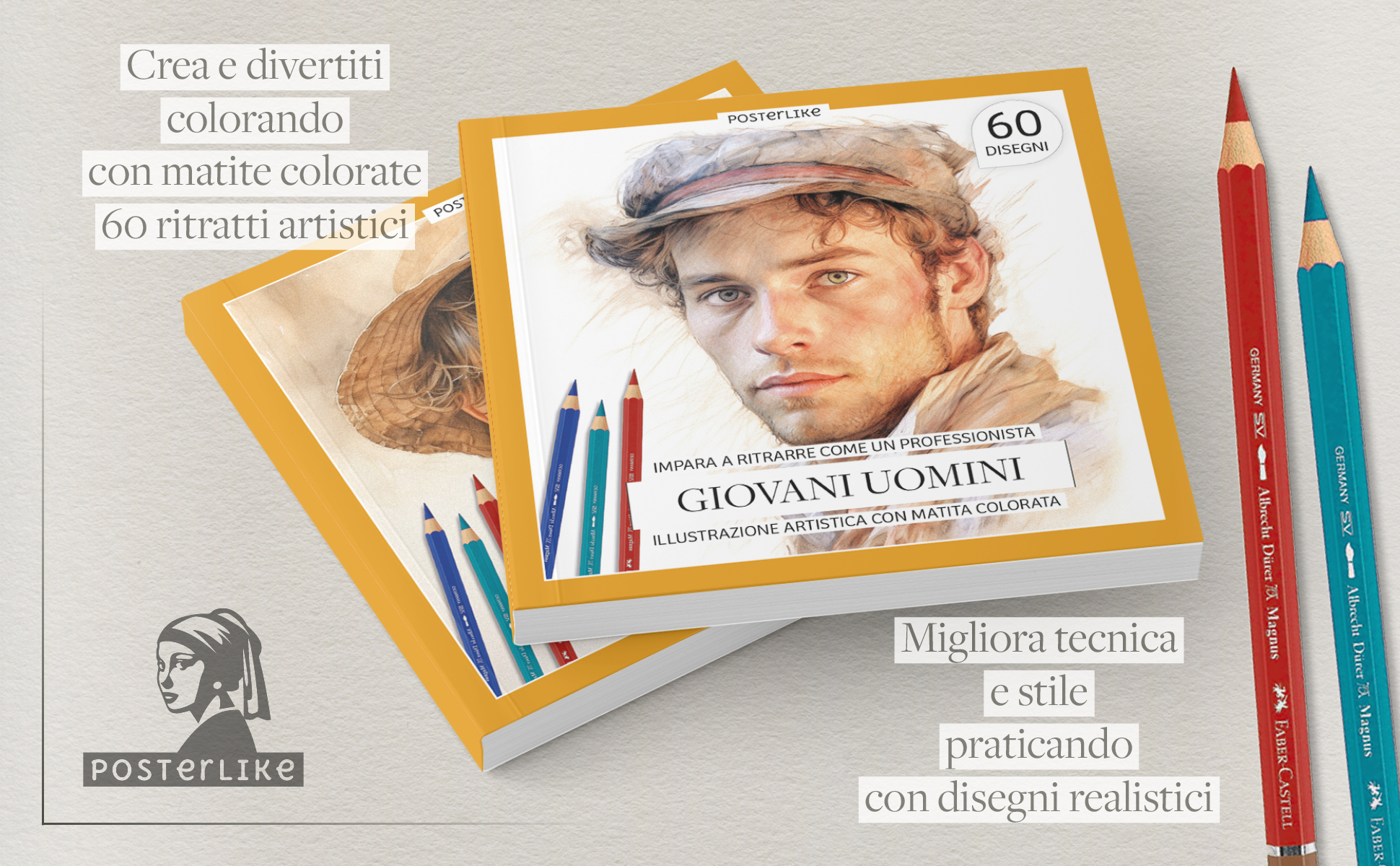 Scopri l’arte della ritrattistica maschile con il libro “Impara a ritrarre come un professionista Giovani uomini”. Osa esercitarti con le matite colorate avanzate attraverso 60 esercizi dettagliati ispirati ai grandi maestri. Questo libro non solo migliora le tue abilità, ma ti immerge anche in un’esperienza di apprendimento piacevole e arricchente. Fai il salto artistico che stavi cercando!