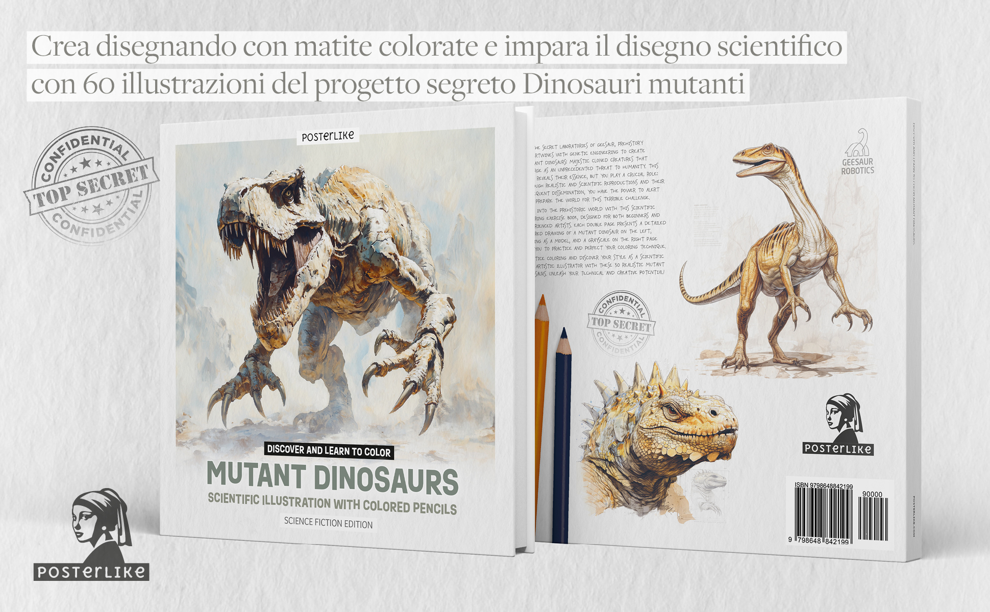 Nei laboratori segreti di GEESAUR, la preistoria si intreccia con l’ingegneria genetica creando i Dinosauri Mutanti: maestose creature clonate che emergono come una minaccia senza precedenti per l’umanità. Questo libro ti rivela la sua essenza, ma tu svolgi un ruolo cruciale: attraverso riproduzioni realistiche e scientifiche a matita, e la loro successiva diffusione, hai il potere di allertare e preparare il mondo a questa terribile sfida. Immergiti nell’affascinante mondo preistorico con questo pratico quaderno di disegno scientifico progettato sia per i principianti che per gli artisti esperti.