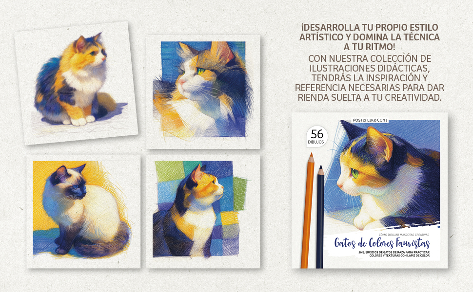 «Gatos de Colores Fauvistas» no es solo una herramienta educativa, es un recurso de inspiración y creatividad. Con una estructura clara y ejercicios prácticos, te guía para experimentar con combinaciones cromáticas impactantes y técnicas de lápices de colores, ayudándote a descubrir nuevas posibilidades artísticas. Ideal para artistas autodidactas, estudiantes y profesores que desean explorar nuevos estilos en el dibujo de animales.