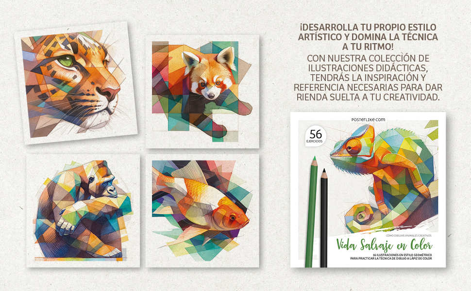 “Wildlife in Color” é muito mais do que um livro de colorir: é uma ferramenta abrangente para aprender, praticar e dominar a arte do desenho animal. Suas ilustrações em estilo geométrico, combinadas com cores vibrantes e técnicas de lápis de cor, oferecem uma experiência artística única que leva suas habilidades para o próximo nível enquanto você desfruta do processo criativo.