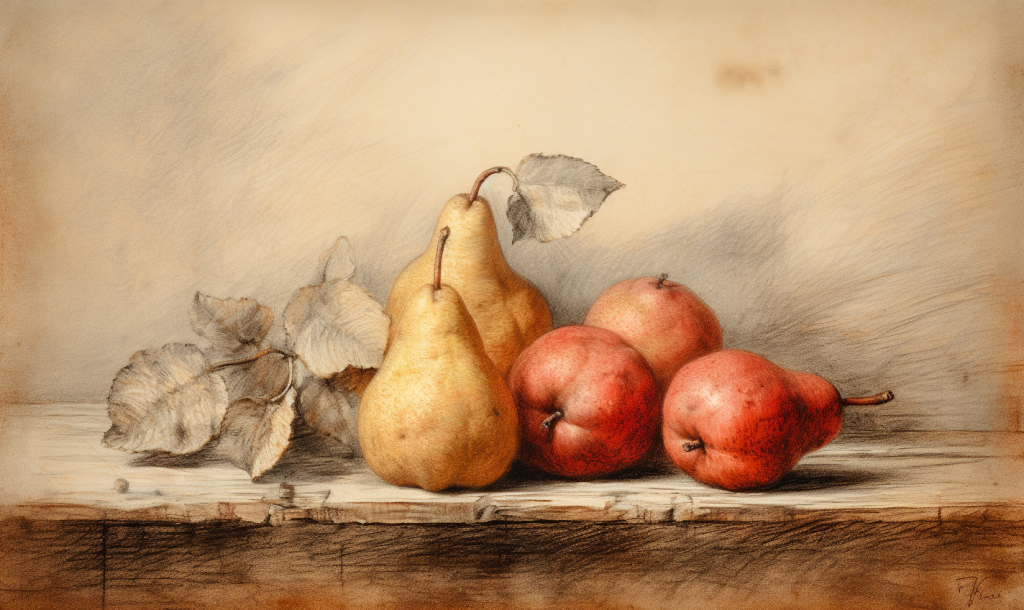 Bodegones: la sanguina es también muy utilizada para la representación de objetos inanimados, gracias a su capacidad para recrear texturas y volúmenes de forma muy realista.